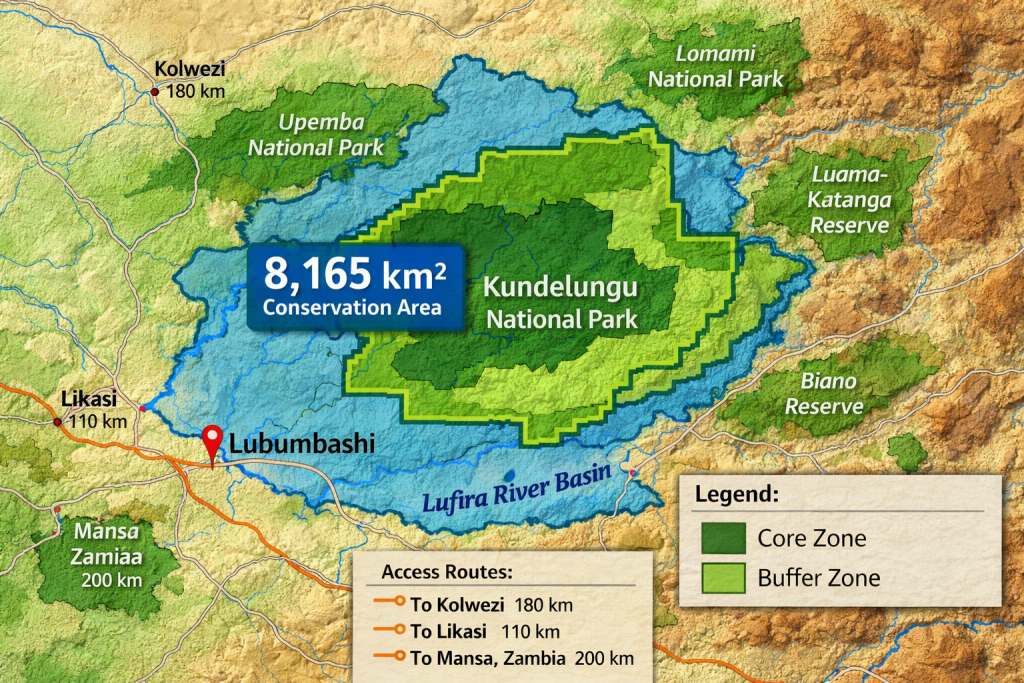 Kundelungu National Park DR Congo fits within broader conservation planning for southeastern DRC and the greater Congo Basin region. The park’s position near other protected areas creates potential for wildlife corridors and ecosystem connectivity.