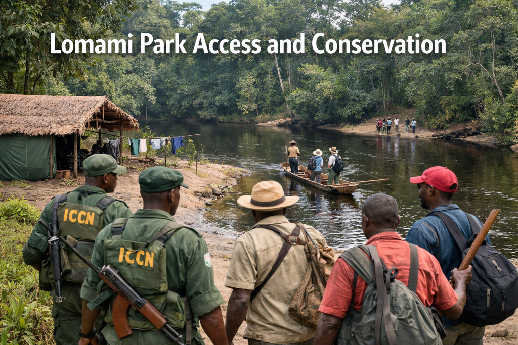 Visitors planning safaris to Lomami National Park must coordinate travel through registered tour operators with established relationships to ICCN and Frankfurt Zoological Society. Independent travel to the park is not permitted, and no public accommodation facilities exist within or immediately adjacent to park boundaries.